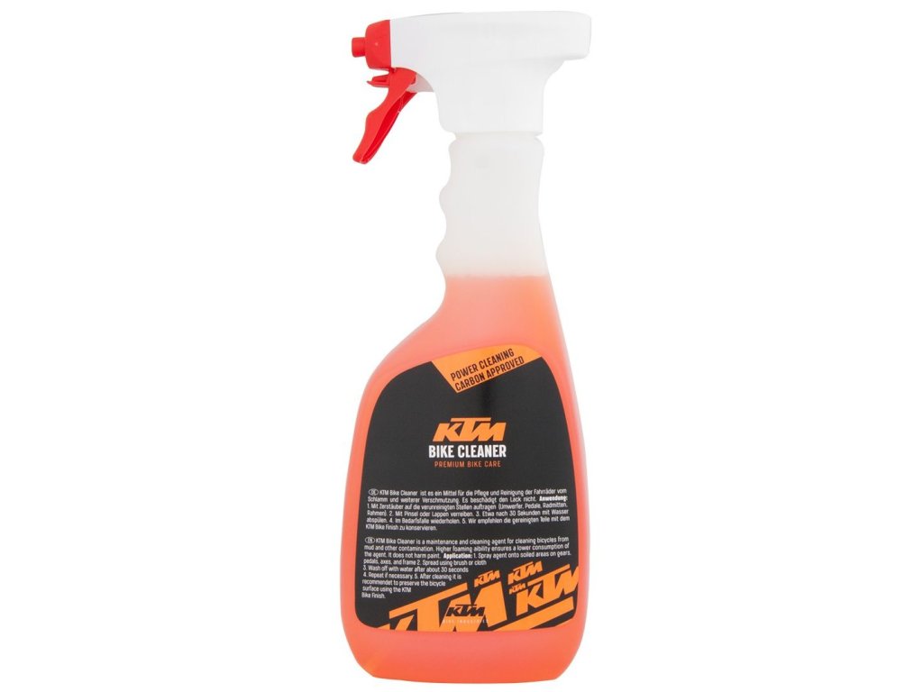 KTM Bike Cleaner je prostředek určen pro údržbu a čištění jízdních kol od bláta a jiných nečistot. Bike Cleaner se nastříká na kontaminované místa např. přehazovačky, pedály, náboje, rám). Je vhodný zejména k čištění velmi znečištěných částí (řetězy, ozubená kola apod.), kam se dostane díky své pěnivosti a tak je spotřeba produktu nižší.