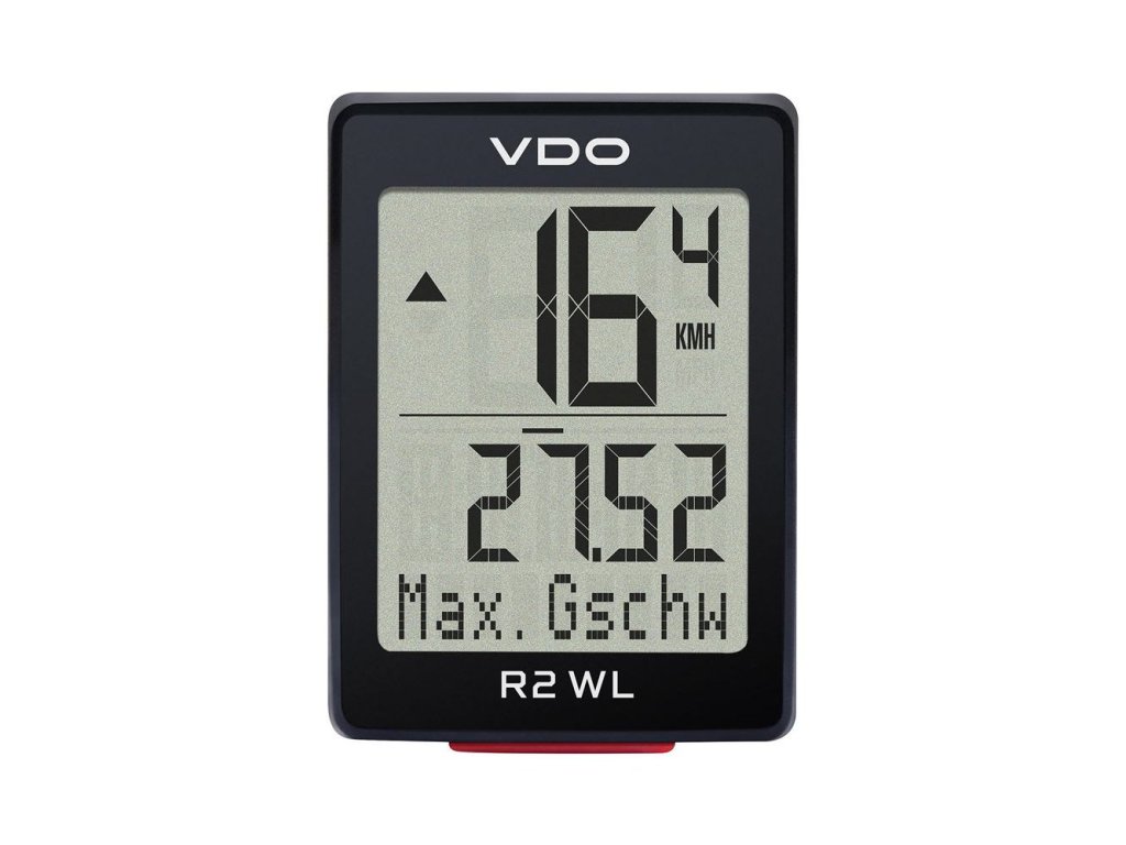 S bezdrátovým computerem VDO R2 WL máte na cestě do kanceláře, na tréninku nebo na víkendové vyjížďce vždy přehled o deseti nejdůležitějších hodnotách své jízdy. Computer R2 WL zobrazuje okamžitou rychlost, ujetou denní vzdálenost, čas jízdy, hodiny, průměrnou a maximální rychlost, celkovou vzdálenost a čas jízdy a také aktuální teplotu. Navíc porovnává průměrnou a aktuální rychlost. To vás motivuje k rychlejší jízdě a překonávání vlastních rychlostních rekordů. Nastavení a ovládání R2 WL je super snadné pomocí červeného tlačítka menu. Nastavení obvodu kola je další snadnou záležitostí, protože si můžete vybrat z integrované tabulky plášťů. Držák na řídítka pro vodotěsný computer lze rychle namontovat na kolo pomocí přiložených stahovacích pásků. Computer lze poté snadno vyjmout a uschovat, čímž jej ochráníte před možným odcizením. Bezdrátový přenos dat zajišťuje analogový vysílač, který je umístěn na vidlici kola. Baterie (CR2032) postačí k napájení computeru po dobu delší než dva roky.