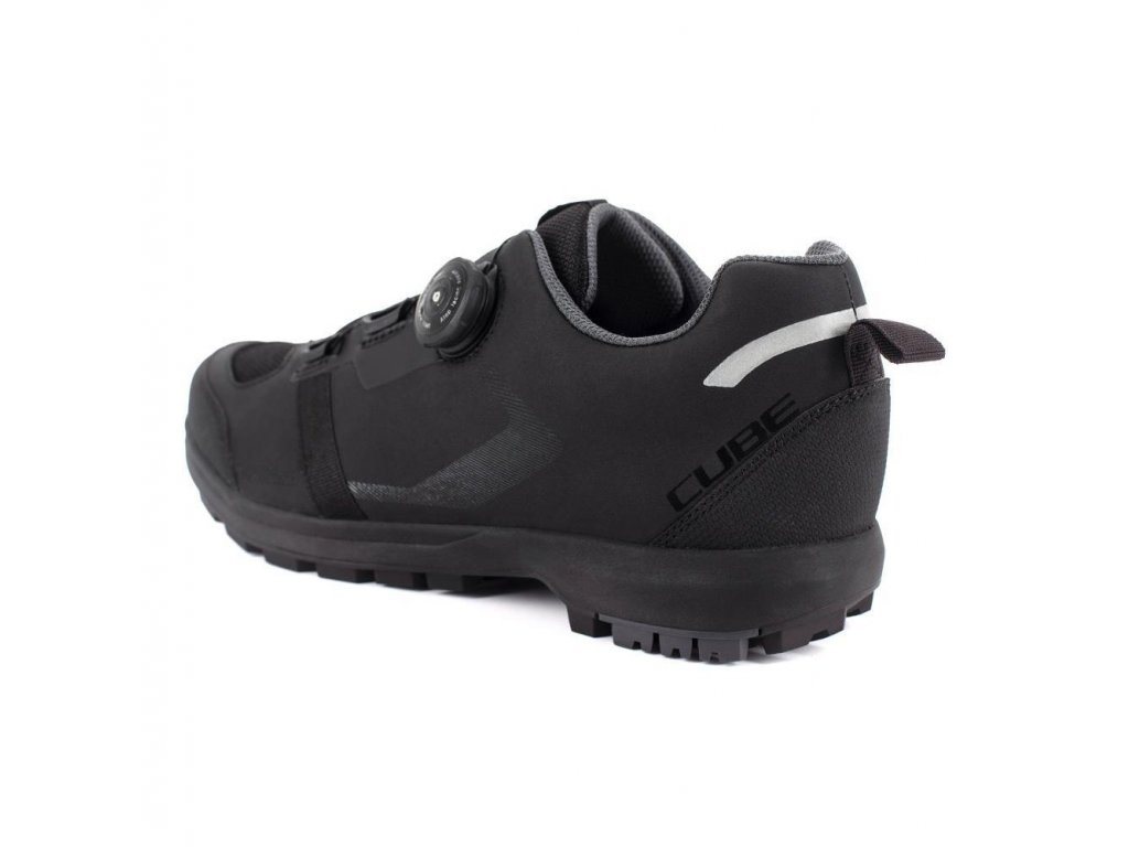 Stylová terénní obuv s důmyslným zapínáním na kolečko a skvěle padnoucí díky ergonomicky optimalizovanému tvarování a stélce CUBE Natural Fit. Chytré funkce, jako je systém snadného nazouvání a držák tkaniček, usnadňují život v sedle, zatímco protiskluzová gumová podrážka je kompatibilní s bezklíčovými pedálovými systémy a udržuje pevnou oporu na kole i mimo něj. Odolný svršek a vyztužená oblast prstů dobře chrání nohy, zatímco skvělé odvětrávání zajišťují větrací otvory a síťované panely. Reflexní detaily na patě zvyšují bezpečnost za zhoršených světelných podmínek.