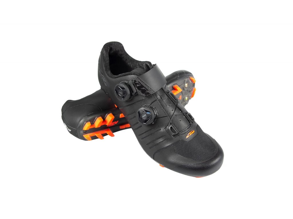 Tretry KTM s tuhou karbonovou podrážkou pro závodní použití na horských kolech.