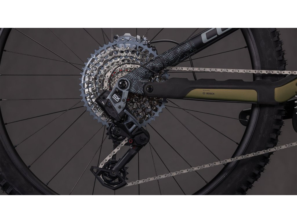 Srdcem kola je výkonný motor Bosch Performance Line CX s točivým momentem až 100 Nm, doplněný o integrovanou baterii Bosch PowerTube 800Wh a displej Kiox 400C. Přesné řazení zajišťuje bezdrátová sada Sram GX Eagle AXS Transmission, zatímco spolehlivé brzdění obstarávají čtyřpístkové brzdy Sram Maven Bronze s kotouči 200 mm.