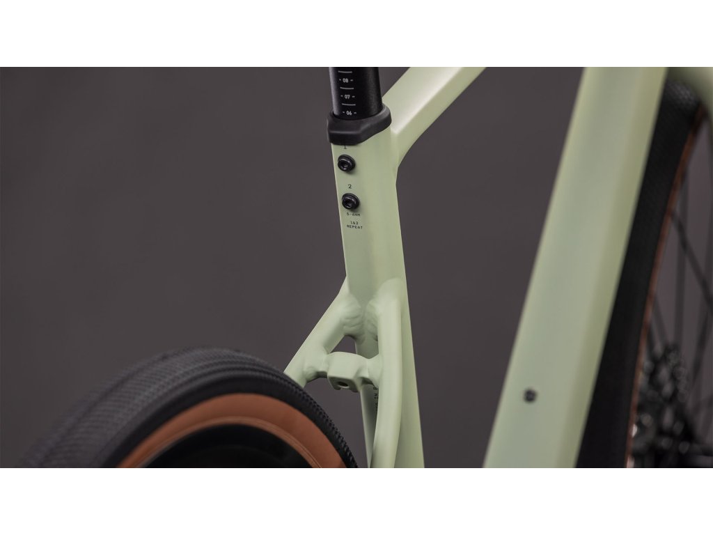 Při tvorbě modelu Nuroad jsme vycházeli z našich závodních a cyklokrosových kol a přidali jsme k nim trochu DNA horského kola. Rám poskytuje dostatek místa pro široké, přilnavé a pohodlné pláště až 45 mm – nebo 40 mm, pokud zároveň používáte blatníky. Součástí je integrovaná objímka sedlovky, precizně řešené úchyty pro nosič, blatníky a stojan, a elegantní vedení kabelů uvnitř rámu. Kola s průchozí osou zlepšují přesnost řízení i na těch nejnáročnějších cestách. Celokarbonová vidlice není jen lehká – zároveň snižuje vibrace od vozovky a nabízí úchyty pro lowrider nosič. Díky širokému rozsahu velikostí od XXS do XL si každý jezdec najde svůj ideální Nuroad.