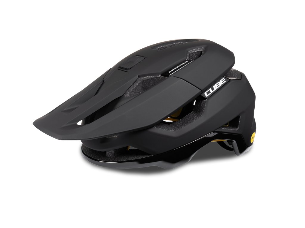 Enduro helma CUBE TROOPER MIPS spojuje ochranu, funkčnost a pohodlí pro náročné traily. Technologie MIPS snižuje rotační síly při nárazu, zatímco konstrukce Defense Skeleton a hluboký zadní kryt poskytují zvýšenou ochranu. Pevný breakaway kšilt chrání oči a redukuje torzní síly na krk.