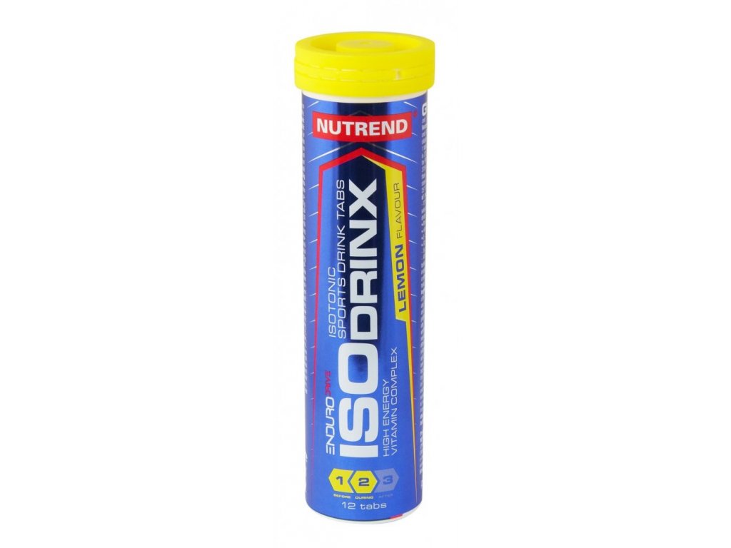 - ISODRINX TABS příchuť citron: glukóza, regulátor kyselosti kyselina citronová, hydrogenuhličitan sodný, isomaltulóza (je zdrojem fruktózy a glukózy) - PalatinoseTM, nosič polyethylenglykol, uhličitan vápenatý, stabilizátor směs akáciové a xantanové gumy, chlorid sodný, uhličitan hořečnatý, aroma, dihydrogenfosforečnan draselný, vitaminový premix (kyselina L-askorbová, DL-α-tokoferylacetát, nikotinamid, D-pantotenát vápenatý, pyridoxin hydrochlorid, riboflavin, thiamin mononitrát, kyselina pteroylmonoglutamová, D-biotin, kyanokobalamin), sladidla sukralóza a acesulfam K. 100 g/1 tableta obsahuje: energetická hodnota - 1319 kJ/310 kcal / 149 kJ/35 kcal • tuky - 0 g/0 g • z toho nasycené mastné kyseliny - 0 g/0 g • sacharidy - 65,2 g/7,4 g • z toho cukry - 63 g/7,1 g • vláknina - 0 g/0 g • bílkoviny - 0 g/0 g • sůl - 1,1 g/0,1 g • vitaminy: C - 160 mg/18 mg • Niacin - 32 mg/3,6 mg • E - 24 mg/2,7 mg • kyselina pantotenová -12 mg/1,4 mg • B6 - 2,8 mg/0,3 mg • B2 - 2,8 mg/0,3 mg • B1 - 2,2 mg/0,2 mg • B12 - 5 g/0,6 g • biotin - 100 g/11,3 g • kyselina listová - 400 g/45 g. Obsah vitaminu ve 100 g/1 tablete odpovídá 200 %/22 % referencní hodnoty príjmu. 1 tableta: 11,3 g. Hmotnost obsahu balení: 136 g.