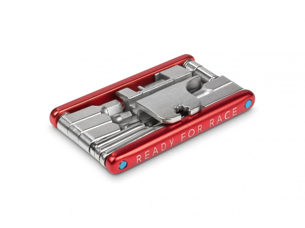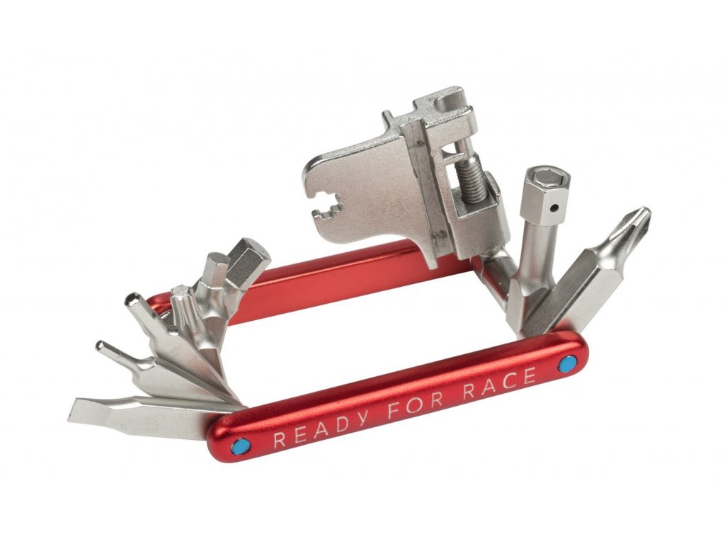 Nářadí s 16 funkcemi: šestihran 2/ 3/ 4/ 5/ 6/ 8, šestihran vnitřní 25, Philips 2, šroubovák, klíč na paprsky 13/ 14/ 15/ 16G a Mavic drážkování, nýt na řetěz a otvírák na lahve.