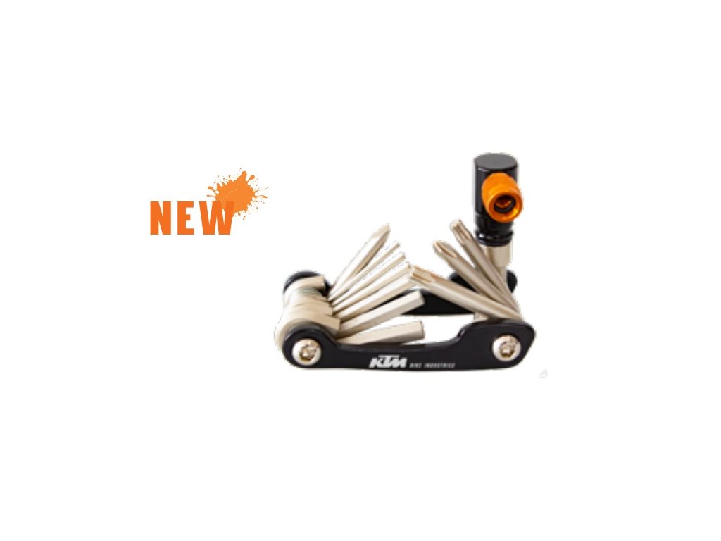 KTM multitool, multiklíč na kolo, cyklo nářadí, multitool s inflátorem, CO2 inflátor, KTM nářadí, kapesní multiklíč, cyklistické nářadí, KTM Multitool 13 funkcí