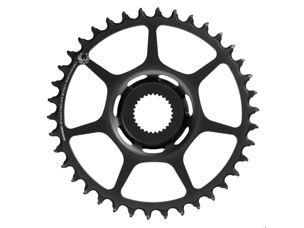 Vysoce odolný SRAM X-SYNC 2 Eagle převodník pro elektrokola s pohony Bosch, 38 zubů. Technologie Direct Mount s offsetem 3,0 mm zajišťuje přesný a tichý chod řetězu a spolehlivé řazení v náročném terénu.
