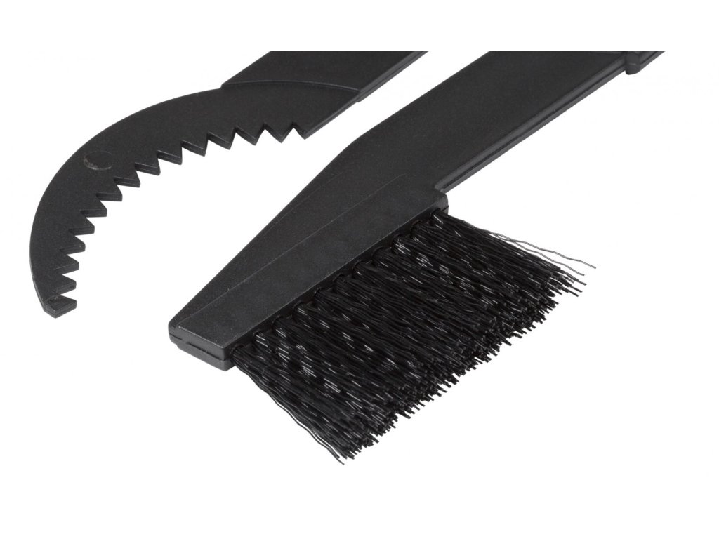 Sada obsahuje škrabku na ozubená kola pro odstraňování hrubých nečistot a kartáč na čištění pastorku a převodovky. Dlouhá životnost díky nylonovým štětinám.